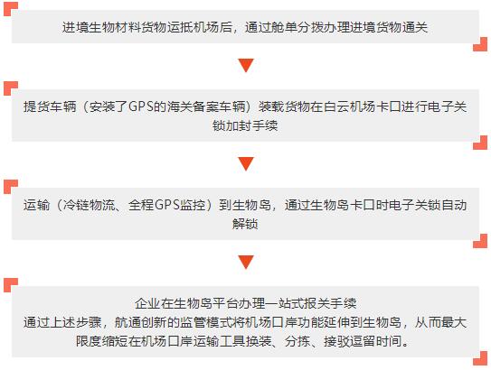 整合平臺(tái)運(yùn)營(yíng)和冷鏈物流溫控系統(tǒng),開(kāi)發(fā)生物島監(jiān)管輔助系統(tǒng)對(duì)接空運(yùn)智能化監(jiān)管系統(tǒng)、海關(guān)艙單管理系統(tǒng),可實(shí)現(xiàn)全過(guò)程電子化監(jiān)管、分類監(jiān)管和產(chǎn)品可追溯后續(xù)監(jiān)管等功能,促進(jìn)實(shí)物流、信息流、資金流三流合一。