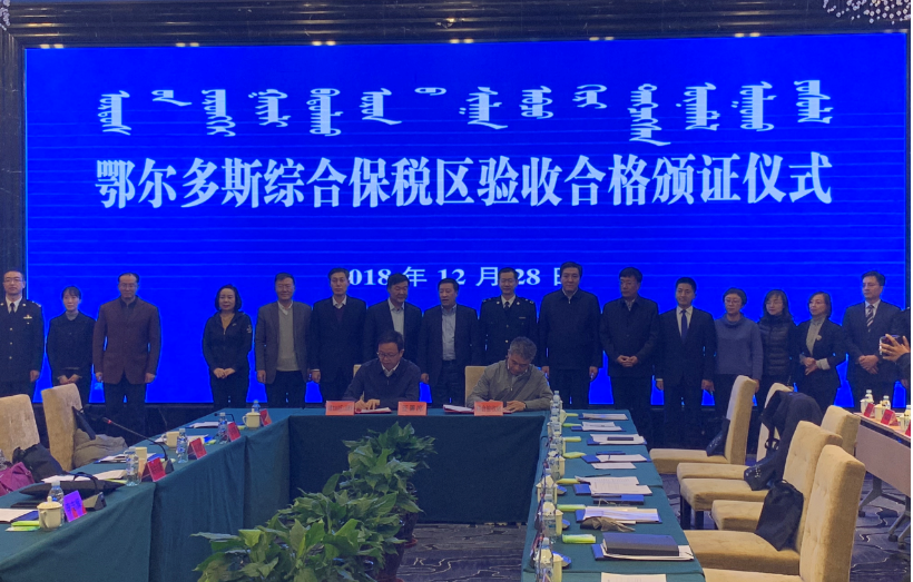 時(shí)間追溯到2012年底,鄂爾多斯啟動(dòng)綜合保稅區(qū)申建工作, 2017年2月14日國務(wù)院正式同意批復(fù)設(shè)立,經(jīng)過一年多的實(shí)施建設(shè),2018年12月6日一次性通過內(nèi)蒙古自治區(qū)的聯(lián)合預(yù)驗(yàn)收,緊接著在12月28日一次性順利通過由海關(guān)總署牽頭,商務(wù)部、國家發(fā)展改革委、財(cái)政部等國家八部委組成的聯(lián)合驗(yàn)收組正式驗(yàn)收。